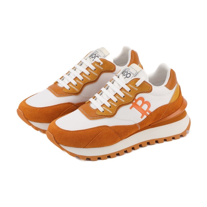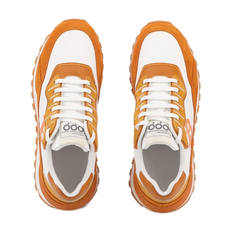 Crisp Contrast: The high-contrast white and orange colorway offers a sharper, more athletic look compared to the monochromatic amber edition, making it a standout piece for street-style or casual office wear.